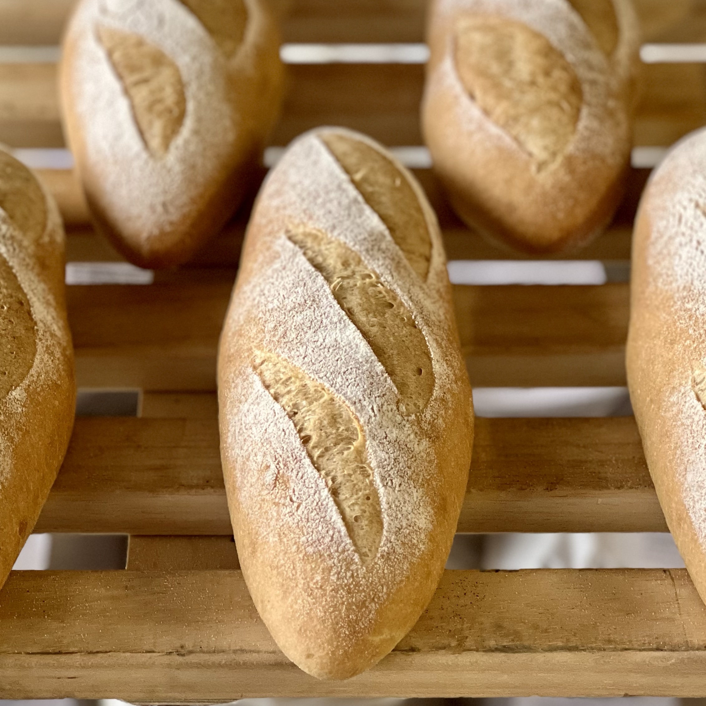 Mit Wilma entführen wir dich nach Paris. Wilma ist unser Baguette. Es hat eine helle, lockere Krume. Wir backen es mit wenig Hefe, viel Zeit für eine bessere Verträglichkeit, Olivenöl, Steinsalz, selbst gemachtem Buchweizenbackmalz und einer Mischung aus Kartoffelstärke, Hirsemehl, Buchweizenmehl und Reisvollkornmehl.