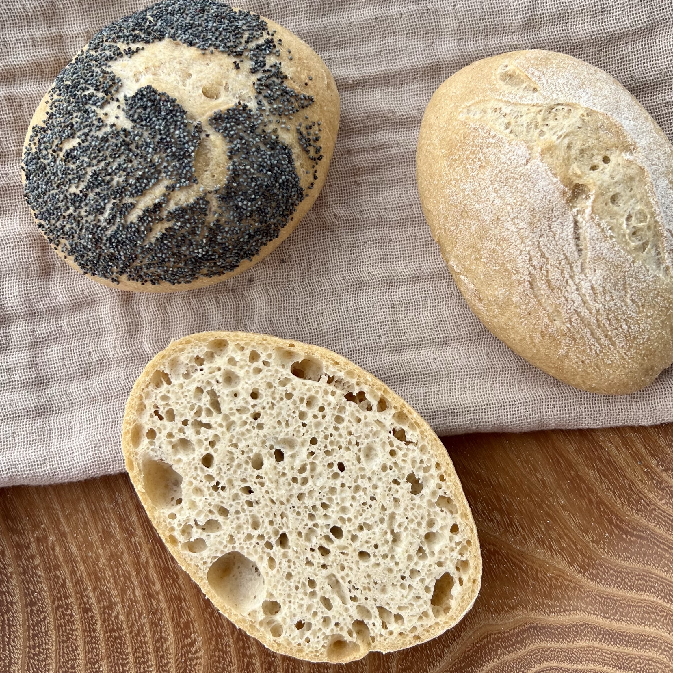 Wir backen Kira mit wenig Hefe und viel Zeit für eine bessere Verträglichkeit. In den Teig kommen Olivenöl, Steinsalz, selbst hergestelltes Backmalz aus Buchweizen und eine Mischung aus Kartoffelstärke, Hirsemehl, Buchweizenmehl und Reisvollkornmehl.
